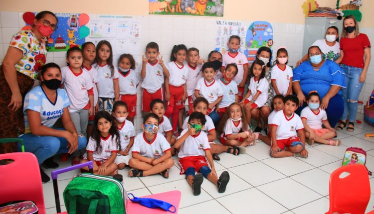 O prefeito Anchieta Patriota e a secretária de Educação, Cecília Patriota, estiveram em algumas escolas da sede, fazendo a entrega aos alunos.