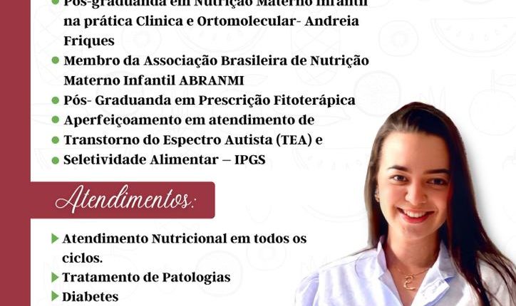Nutricionista Dra Eduarda Gecina atende nesta quarta (25) na SegVida em Santa Terezinha.