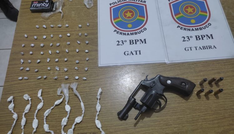 Além da arma de fogo, ele estava com pedras de Crack e cocaína.