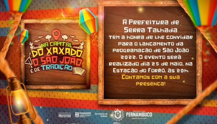 Com o tema “Na Capital do Xaxado, o São João é de Tradição”, a prefeitura de Serra Talhada anunciou a programação da programação junina deste ano. A programação vai de 21 a 25 de junho no Polo Estação do Forró.