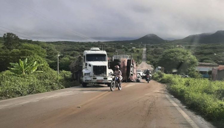 Carreta com cimento tomba na manhã de hoje (31) entre Ambó e São José do Egito.