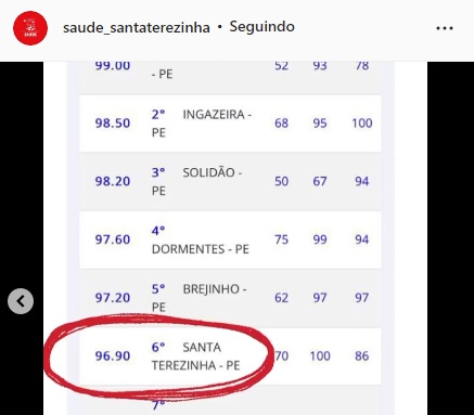 A Secretaria Municipal de Saúde comemorou nas suas redes sociais a excelente colocação nos indicadores do Previne Brasil em 2022 no 1º quadrimestre, alcançado a 6ª posição no estado de Pernambuco, mostrando um ótimo desempenho.