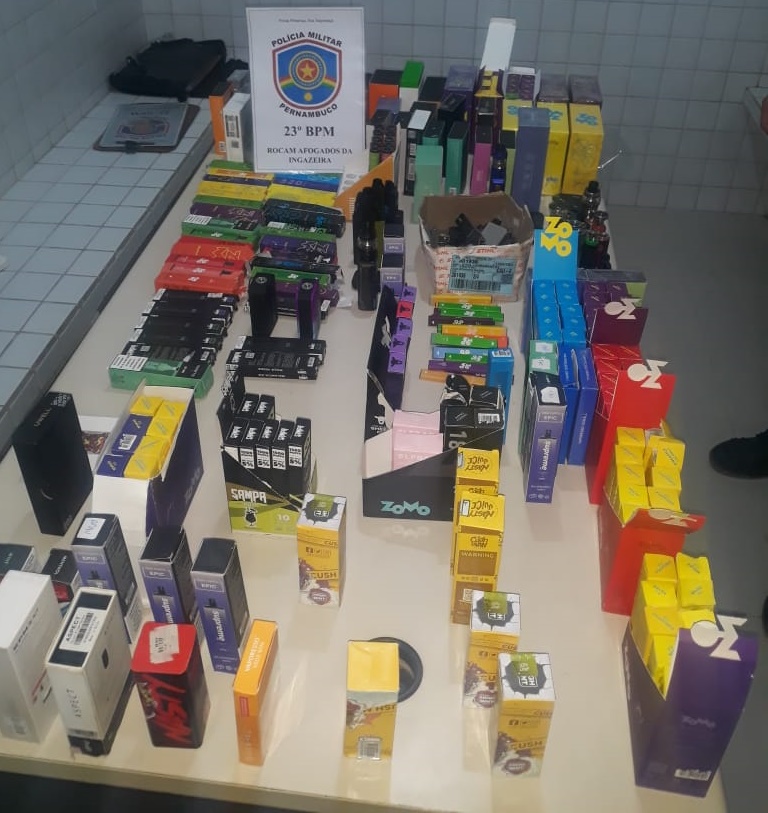 As equipes da 20ª DESEC foram até um estabelecimento comercial no Centro de Afogados na noite dessa sexta-feira (08.07) onde havia denúncias que o proprietário estaria contrabandeado cigarros eletrônicos de uso proibido no Brasil. O efetivo militar deu apoio à ação.