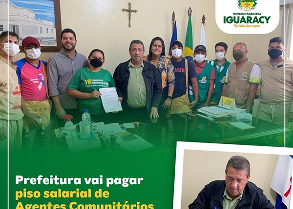 Na manhã desta quarta-feira (27.07), junto ao secretário de Administração, Marcos Melo, e da secretária de Saúde, Joaudeni Cavalcante, o prefeito do município de Iguaracy, Zeinha Torres, assinou o decreto que regulamenta o pagamento do piso salarial aos Agentes Comunitários de Saúde (ACS) e Agentes Comunitários de Endemias (ACE), do município de Iguaracy.