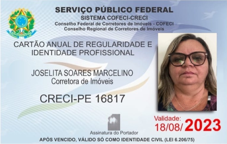 Com preparo e competência, a nova Corretora de Imóveis de Santa Terezinha Joselita Marcelino, agora com registro no Conselho Regional de Corretores de Imóves de Pernambuco (CRECI-PE) já está trabalhando para garantir o sucesso nas etapas de vendas e compras de imóveis na nossa cidade e região.