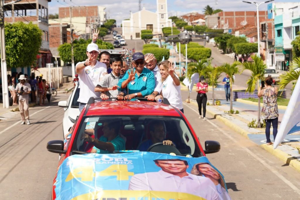 Depois de visitar as cidades de São José do Egito e Carnaíba, na manhã deste sábado 03, o candidato a governador de Pernambuco, Miguel Coelho, acompanhado de sua vice Alessandra Vieira, ambos do União Brasil, seguiram para a cidade da Quixaba, no sertão do Pajeú onde foram recebidos pelo prefeito Zé Pretinho (Avante) em uma grande carreata pelas principais ruas da cidade.