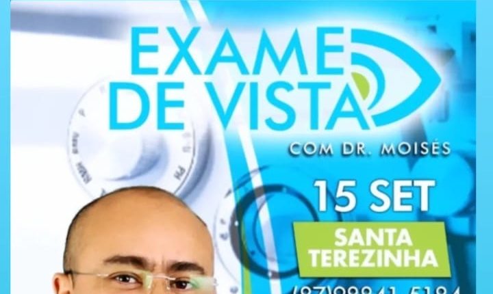 A SegVida informa que nesta quinta-feira, dia 15 de setembro teremos atendimento com o Optometrista Dr. Moisés Santos às 8:00 horas da manhã em Santa Terezinha. Mais informações ligue para o número (87) 98841-5184.