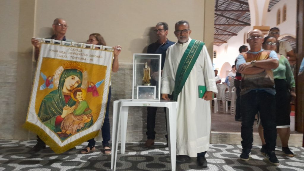 Começou nessa quinta-feira, 22 de setembro a Festa da Padroeira Santa Teresinha na nossa cidade, com procissão saíndo da Capena de Nossa Senhora do Pérpetuo Socorro no Bairro São Luiz, percorrendo ruas e avenidas até a Igreja Matriz, onde tivemos a benção dos veículos, hasteamento da bandeira, novena e a Santa Missa presidida pelo Pe Elielton, natural de Imaculada-PB, que está na Paróquia Santo Antonio em Patos. O Pároco Pe. Orlando e o Diácono Eduardo Oliveira.