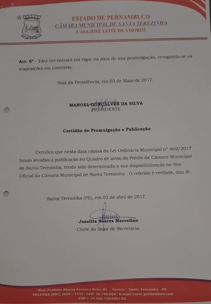 A lei foi promulgada no dia 03 de maio de 2017 (gestão anterior), mas apenas agora começou a ser efetivada.