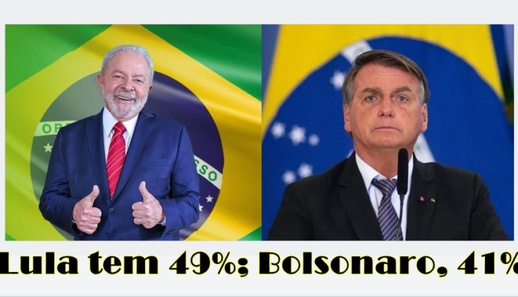 Pesquisa Genial/Quaest aponta Lula com 49% e com Bolsonaro 41%.