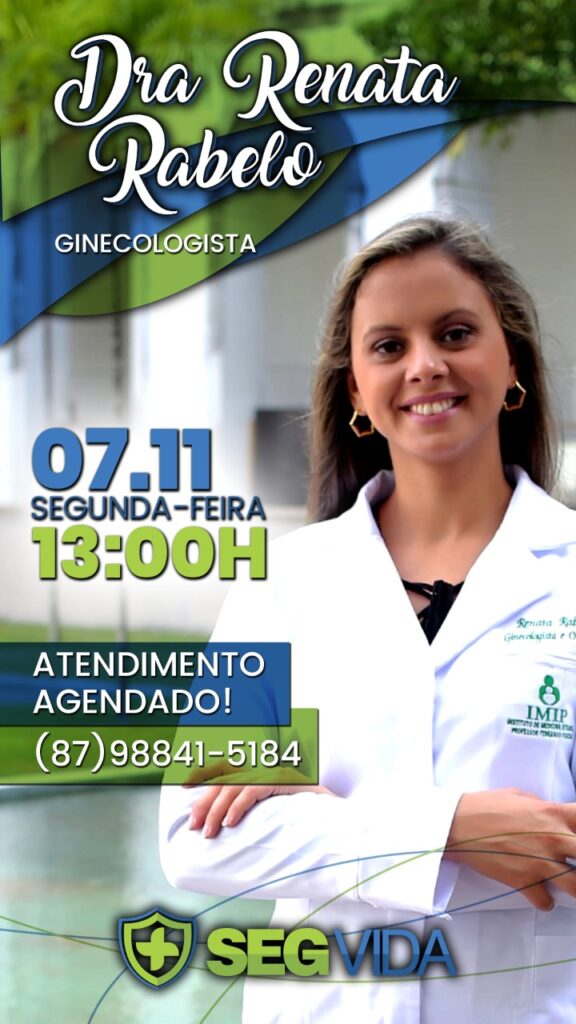 A SegVida em Santa Terezinha comunica a toda população que nesta segunda-feira, 07 de novembro a Ginecologista Dra Renata Rabelo estará atendendo por agendamento a partir das 13 horas. Reserve agora mesmo sua consulta entrando em contato pelo número (87) 98841-5184.