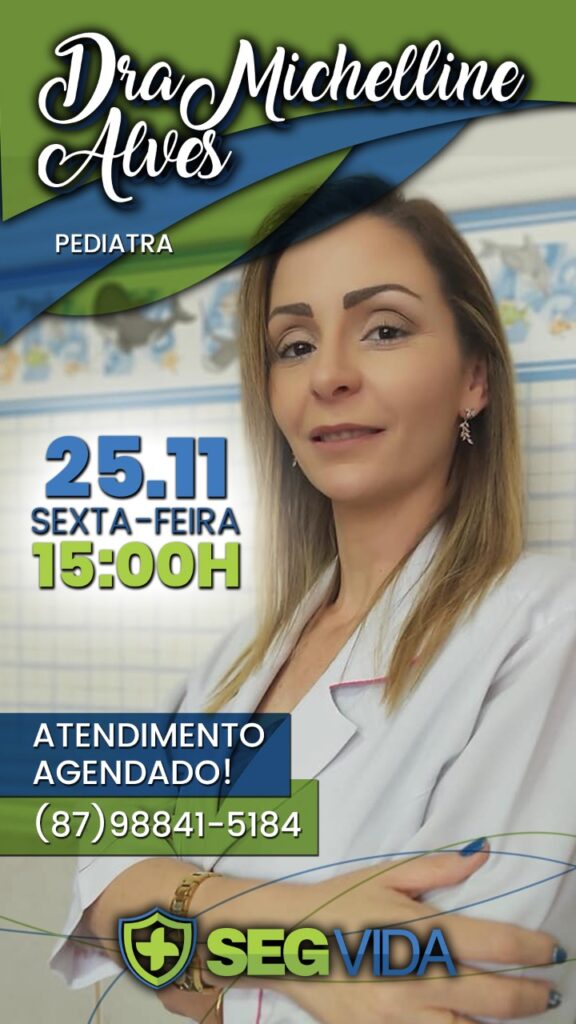 A SegVida em Santa Terezinha comunica aos interessados que sexta-feira, 25 de novembro a Pediatra Dra Michelline Alves estará atendendo em Santa Terezinha a partir das 03 horas da tarde. Reserve hoje mesmo seu atendimento entrando em contato pelo número (87) 98841-5184.