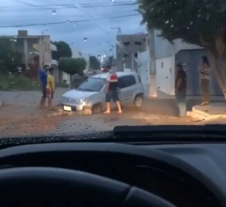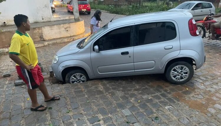 Um veículo foi ‘engolido’ por buraco no bairro AABB na final da tarde dessa terça-feira (29). A odontologista Alana Magalhães, de 31 anos, de Serra Talhada, estava a caminho de casa junto de sua mãe, de 57 anos, que fez aniversário ontem e passou por esse grande susto.