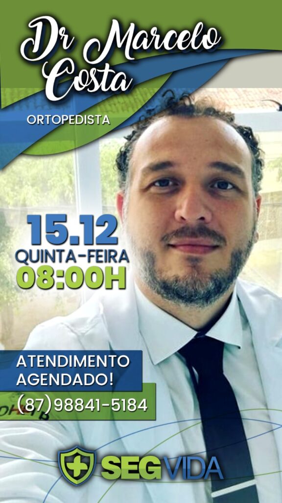 A SegVida em Santa Terezinha comunica a toda população de Santa Terezinha que nesta quinta-feira, 15 de dezembro o Ortopedista Drº Marcelo Costa estará atendendo a partir das 08 horas da manhã. Os atendimentos são por agendamento. Reserve sua vaga hoje mesmo entrando em contato pelo número (87) 98841-5184.
