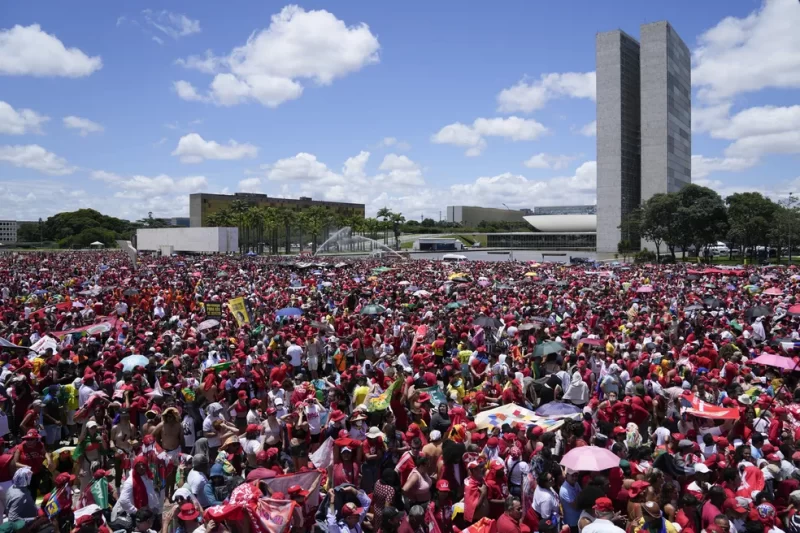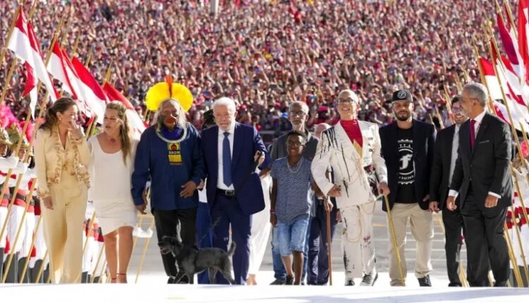 Lula toma posse diante de centenas de milhares, recebe a faixa de representantes do povo e defende a democracia.