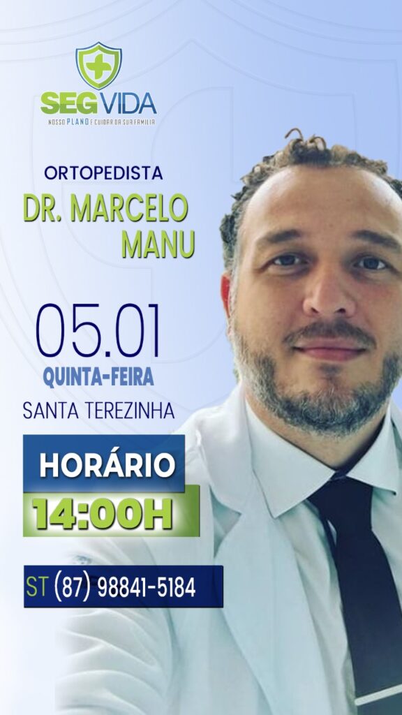 A SegVida em Santa Terezinha comunica a toda população que o Ortopedista Drº Marcelo Manu estará atendendo nesta quinta-feira, 05 de janeiro a partir das 02:00 da tarde. Reserve hoje mesmo seu atendimento entrando em contato pelo número (87) 98841-5184.