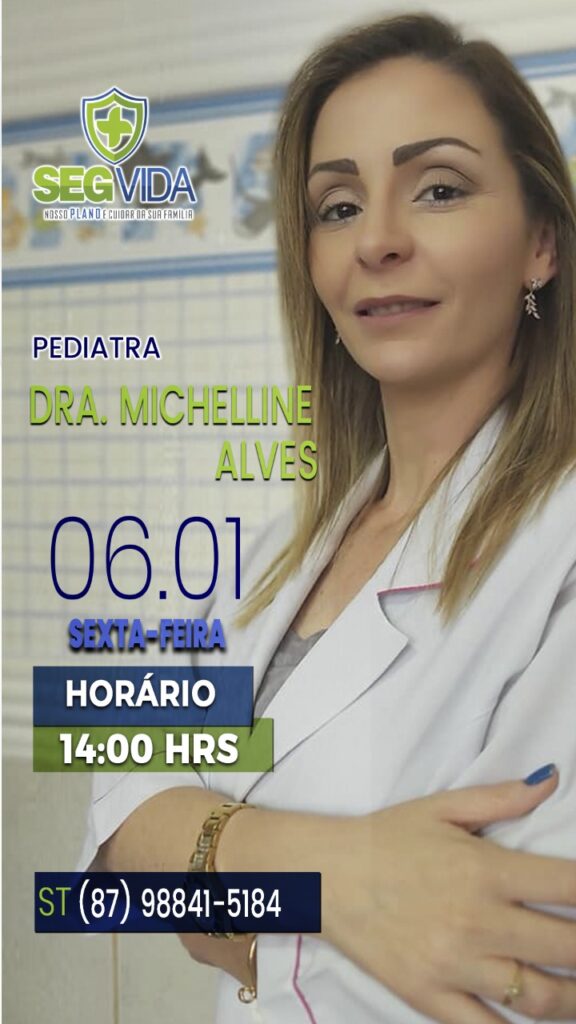 A SegVida em Santa Terezinha comunica a toda população que o Pediatra Drª Michelline Alves estará atendendo nesta sexta-feira, 06 de janeiro a partir das 02:00 da tarde. Reserve hoje mesmo seu atendimento entrando em contato pelo número (87) 98841-5184.