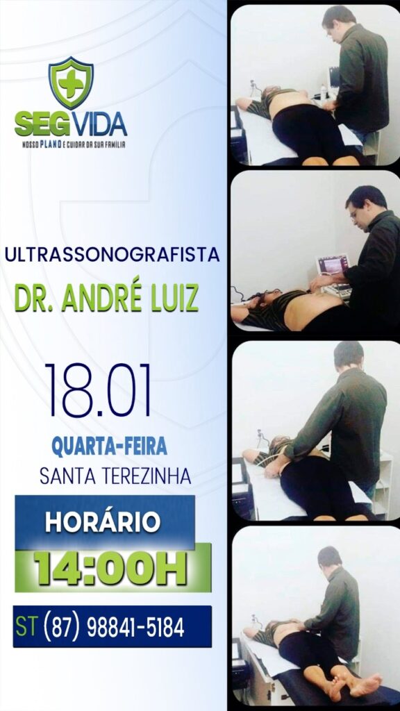 A SegVida em Santa Terezinha comunica a toda população que nesta quarta-feira, 16 de janeiro o Ultrassonografista Drº André Luiz estará atendendo em Santa Terezinha, na sede da SegVida em frente a Igreja Matriz a partir das 02 horas da tarde. Reserve sua vaga ligando para (87) 98841-5184.