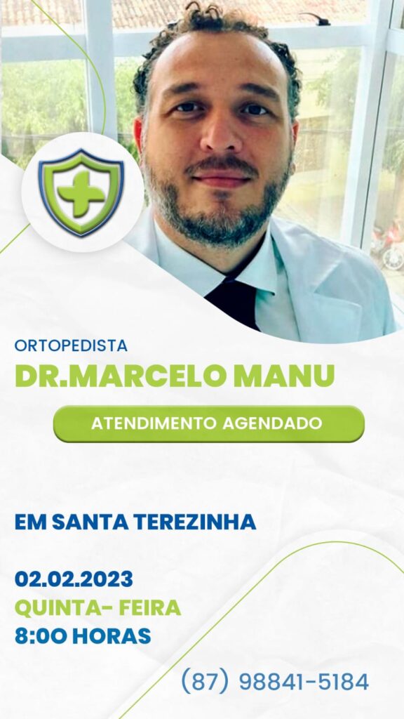 A SegVida em Santa Terezinha comunica aos seus associados e toda população, que nesta quinta-feira, 02 de fevereiro o Ortopedista Drº Marcelo Manu estará atendendo por agendamento a partir das 08 horas da manhã. Reserve sua vaga entrando em contato agora mesmo pelo número (87) 98841-5184.