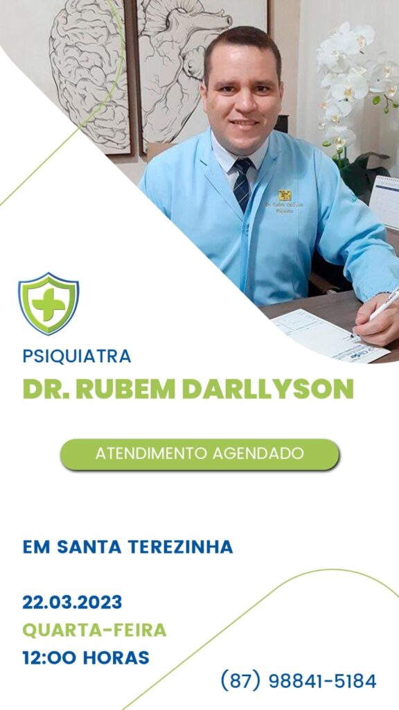 A SegVida comunica aos seus usuários e a toda população da região, que nesta quarta-feira, 22 de março o Psiquiatra Drº Rubem Darllyson estará atendendo em Santa Terezinha por agendamento a partir do meio dia. Reserve hoje mesmo sua vaga entrando em contato pelo número (87) 98841-5184.