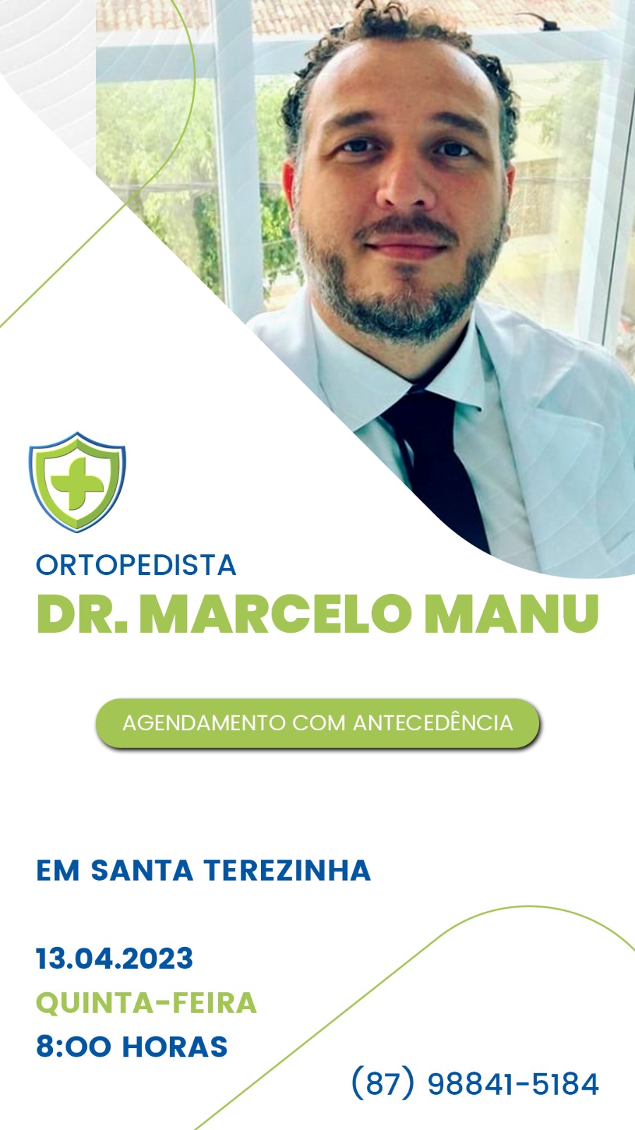 A SegVida informa a população que nesta quinta-feira, 13 de abril o Ortopedista Drº Marcelo Manu estará atendendo com agendamento antecipado a partir das 08:00 da manhã em Santa Terezinha. Marque seu atendimento entrando em contato pelo número (87) 98841-5184.