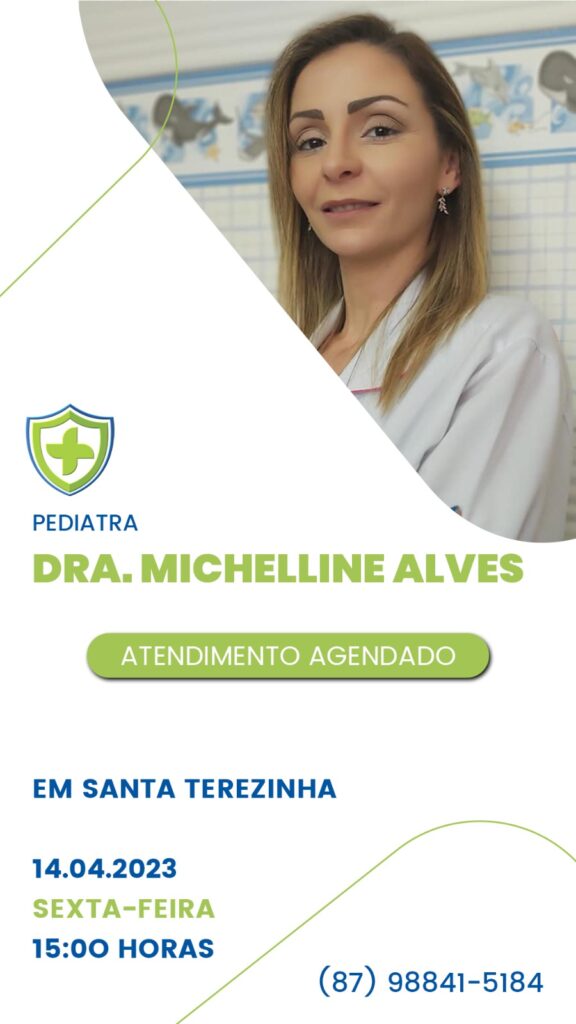 A SegVida informa a população que nesta sexta-feira, 14 de abril a Pediatra Drº Michelinne Alves estará atendendo com agendamento antecipado a partir das 15:00 em Santa Terezinha. Marque seu atendimento entrando em contato pelo número (87) 98841-5184.