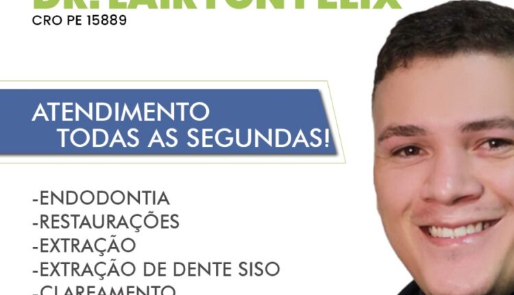 A SegVida em Santa Terezinha comunica a população que o Drº Lairton Felix, pós graduado em Odontopediatria e Ortodontia estará atendedo todas as segundas-feira com vária especialidades. Entre em contato com a SegVida hoje mesmo e marque sua consulta pelo número (87) 98841-5184.