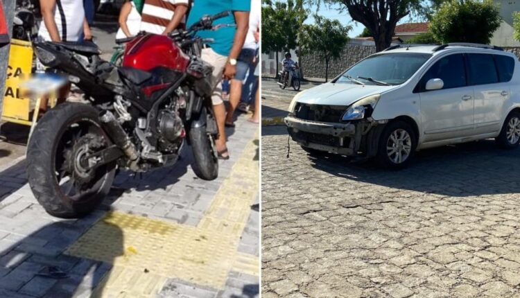 Colisão entre moto e carro é registrada na manhã desta quinta-feira (27) em Patos-PB.