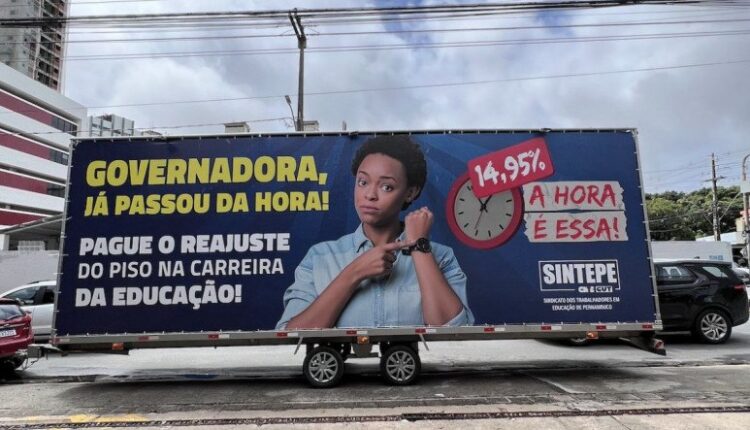 Paralisações dos professores de Pernambuco pelo reajuste do piso salarial acontecem nesta segunda (8) e terça (9).