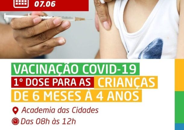A Prefeitura de Santa Terezinha, através da Secretaria Municipal de Saúde, realiza na próxima quarta-feira 07 de Junho, realiza a primeira dose da vacinação da Covid-19, para crianças de 06 meses à 04 anos, na Academia das Cidades das 09 às 12 horas.