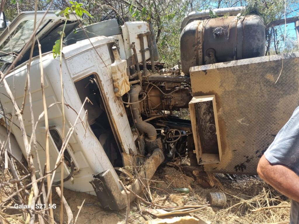 Segundo relato do motorista, Ernanes Soares Bezerra, de 46 anos, a caçamba perdeu os freios enquanto estava carregada e descia a conhecida localidade da Serra Preta, em Mãe d’Água. O caminhão saiu da estrada e acabou capotando.