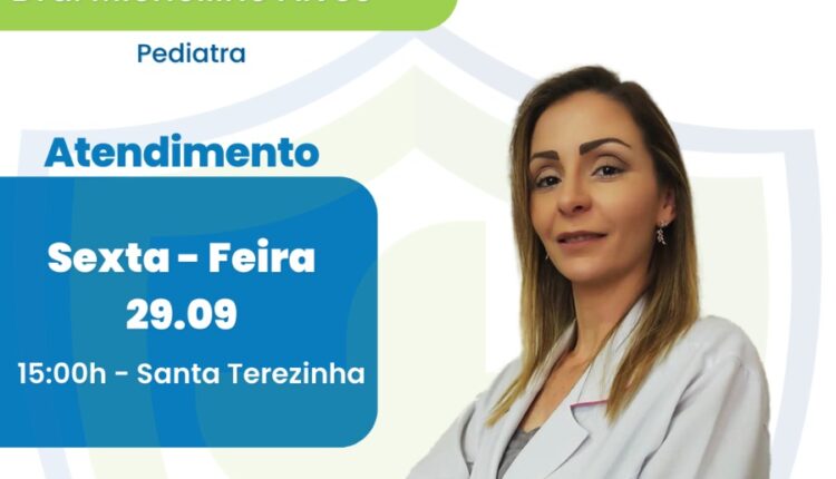 A SegVida em Santa Terezinha comunica aos seus usuários que o Pediatra Drª Michelline Alves estará atendendo por agendamento nesta sexta-feira, 29 de setembro a partir das 03:00 horas da tarde. Reserve agora mesmo seu atendimento entrando em contato pelo número (87) 98841-5184.