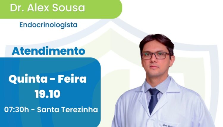 Endocrinologista Drº Alex Sousa atende nesta quinta (19) na SegVida em Santa Terezinha.