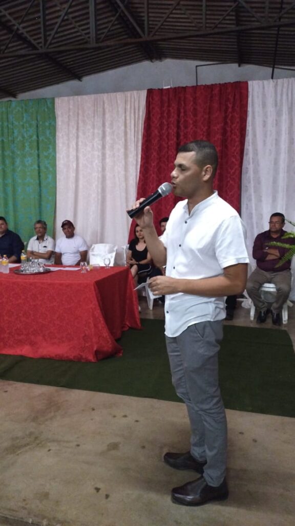Na sua fala durante a posse o jovem destacou a participação da Juventude nos meios sociais e a importância na ocupação dos espaços políticos desde os grupos de jovens associações rurais, conselhos sindicatos e também pode a juventude adentrar no processo da política partidária, exemplificando as maiores lideranças políticas do Brasil como inspiração para continuar na luta por um espaço que trabalhe com pensamentos sociais e projetos citou: