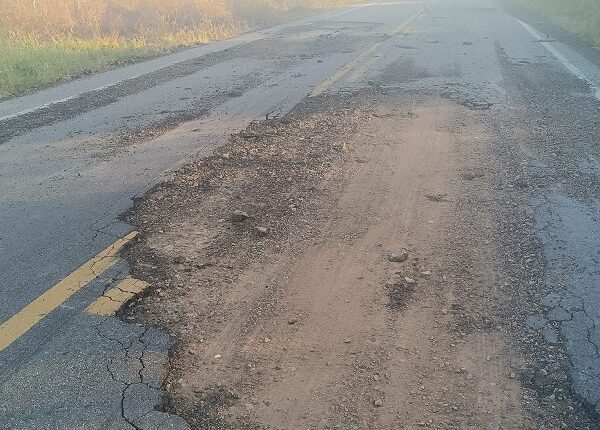 O asfalto está todo quebrado em um trecho entre o KM 49 e Sítio Riachão, em decorrência de um vazamento de água da adutora que leva água entre a cidade de Tuparetama e distrito de Jabitacá.