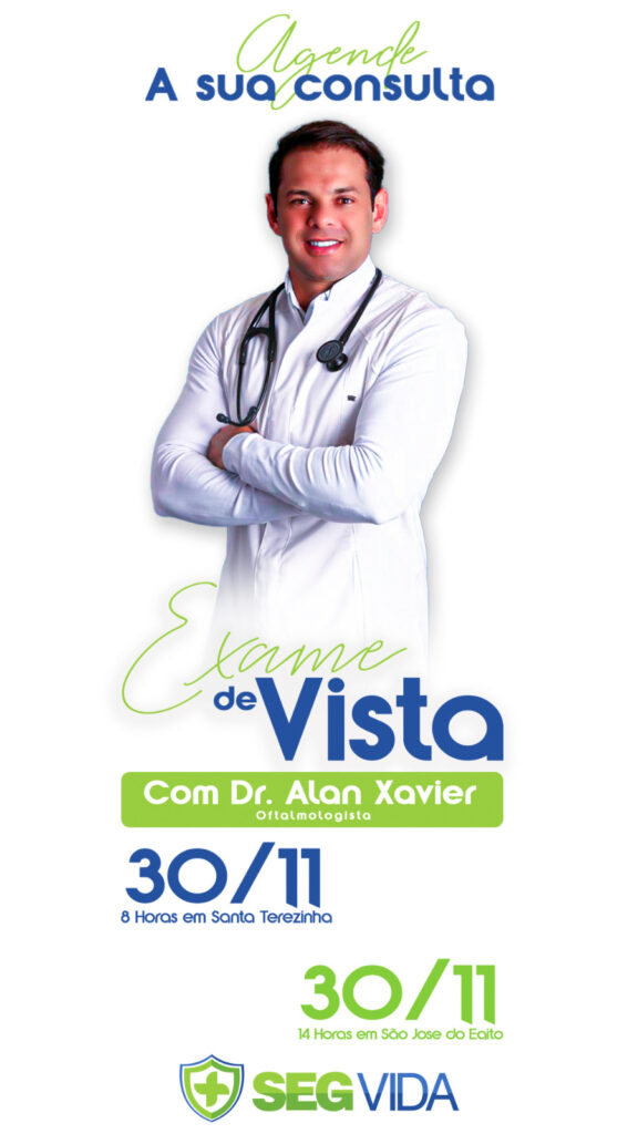 Oftalmologista Drº Alan Xavier atende nesta quinta (30) na SegVida em Santa Terezinha.