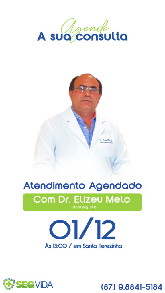 Urologista Drº Elizeu Melo atende nesta sexta (01.12) na SegVida em Santa Terezinha.