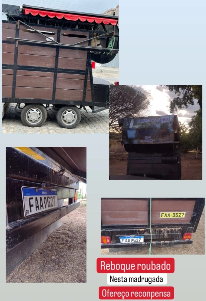 Um reboque de placa FAA 9G27, pertencente ao advogado Estevam Neto, foi furtado na virada do último sábado, 16, para o domingo, 17 de dezembro, do Sítio Tubarão, em São José do Bonfim, município da Região Metropolitana de Patos-PB.
