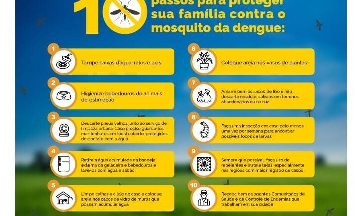 Setor de Endemias de Santa Terezinha divulga dez passos (ou dez minutos) para combater a dengue em sua casa.