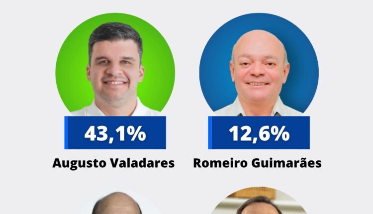 Em segundo lugar viria o ex-prefeito Romério Guimarães (PP), com 12,6%, em terceiro aparecem empatados o empresário Fredson Brito (PV) e o ex-prefeito Zé Marcos (Avante), com 10,6%, enquanto João de Maria (PSB) aparece com 6,3%. Por último, o odontólogo George Borja (sem partido) tem apenas 0,9%. Brancos e nulos somam 6,6% e indecisos 9,3%.