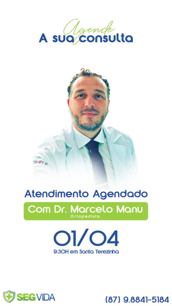A SegVida em Santa Terezinha comunica aos seus usuários que o Ortopedista Drº Marcelo Manu estará atendendo por agendamento nesta segunda-feira, 01 de abril. Os atendimentos cemeçaram às 09:30 da manhã. Reserve agora mesmo seu atendimento entrando em contato pelo número (87) 98841-5184.