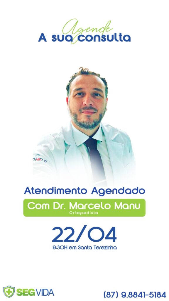 A SegVida em Santa Terezinha comunica aos seus usuários que o Ortopedista Drº Marcelo Manu estará atendendo por agendamento nesta segunda-feira, 22 de abril. Os atendimentos cemeçaram às 09:30 da manhã. Reserve agora mesmo seu atendimento entrando em contato pelo número (87) 98841-5184.