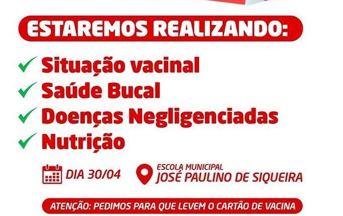 A Prefeitura de Santa Terezinha, no Sertão do Pajeú, estará realizando o programa ‘Saúde na Escola’ no próximo dia 30 de abril. A primeira a receber o programa será a Escola Municipal José Paulino de Siqueira, no turno da manhã.