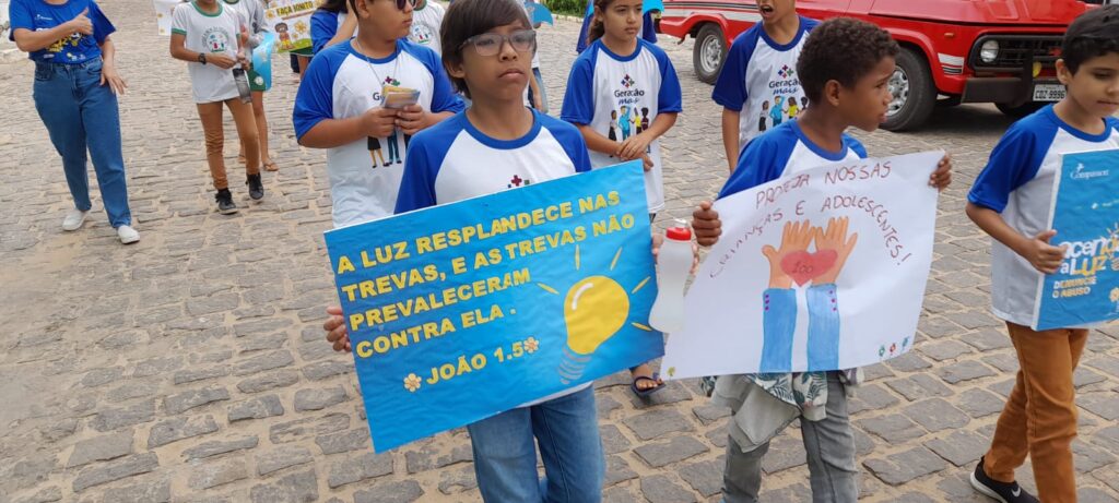 Na manhã desse sábado 18 maio, o projeto social Vinde a mim os Pequeninos de Santa Terezinha, realizou a tradicional caminhada alusiva a data 18 de maio. Onde relembrou os 51 anos do caso da menina Araceli Cabrera Crespo, de oito anos que foi brutalmente violentada e assassinada, a campanha vem ganhando força ano após ano com a participação do projeto social terezinhense.