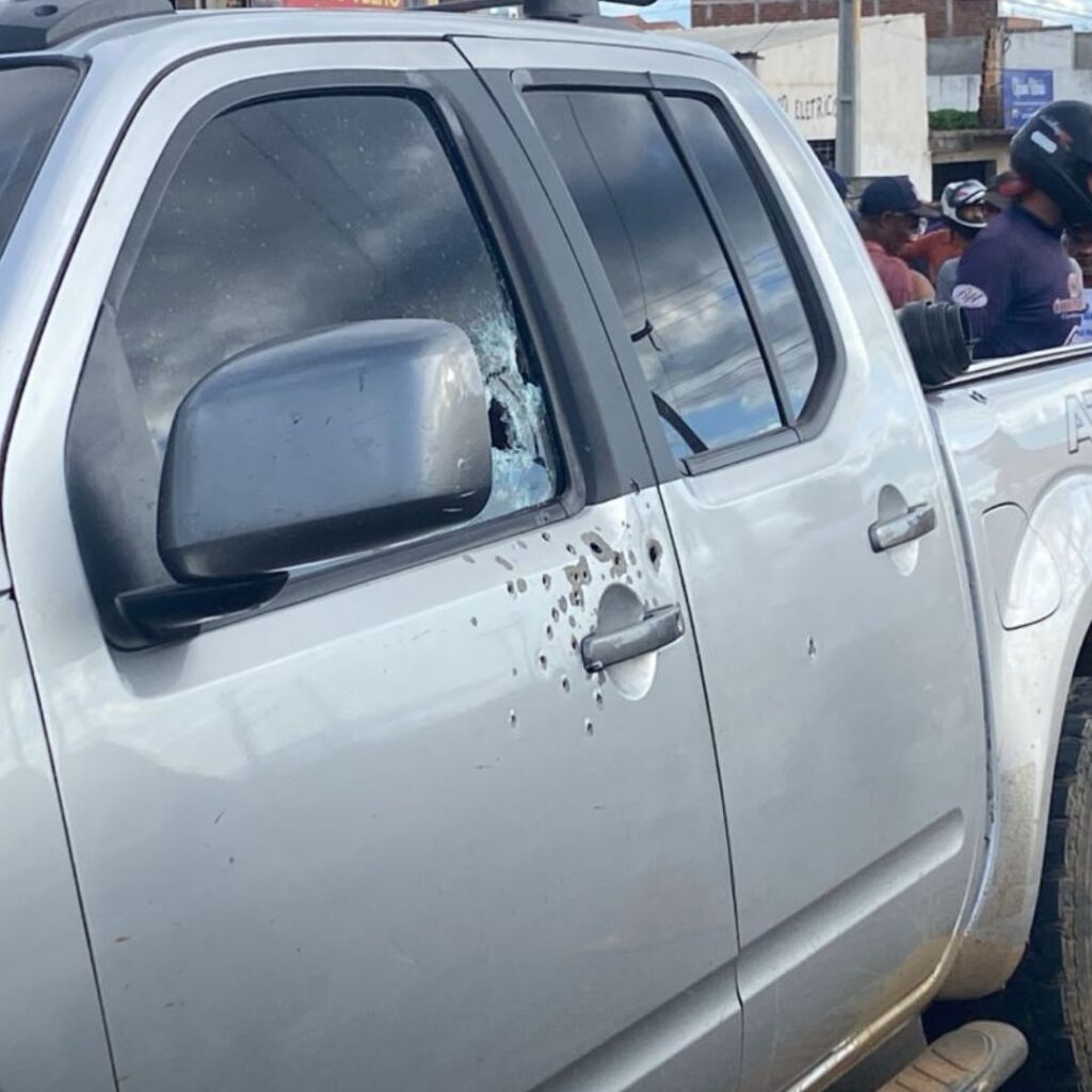 Os disparos atingiram a porta do motorista e parte do vidro. O local em que aconteceu o crime é próximo a entrada da Cohab, em frente a empresa Itaipava.