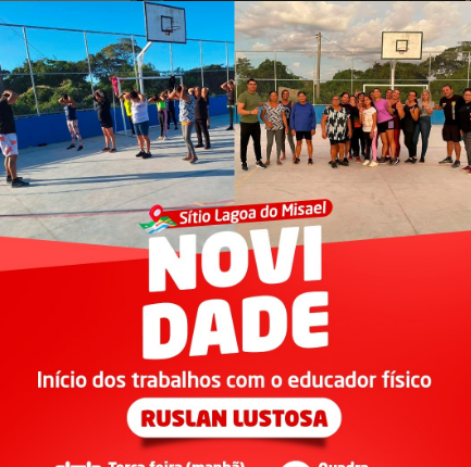 A Prefeitura Municipal de Santa Terezinha, inicio na Comunidade Lagoa do Misael, aulas de Educação Física com o educador professor Ruslan Lustos. As aulas acontecem nas terças-feiras de manhã, quintas-feiras à tarde e sextas-feiras de manhã no sítio Lagoa do Misael, na Toca da Lagoa.