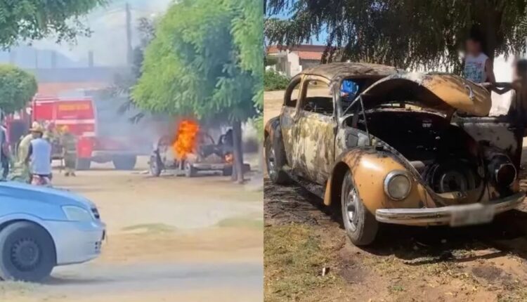 Moradores da Rua São Cristóvão, no bairro Jatobá, Zona Sul de Patos, levaram um susto no final da manhã desta segunda-feira, dia 01 de julho, após um veículo que estava estacionado na calçada de uma residência pegar fogo. Conforme informações apuradas pelo Patosonline.com, o fato ocorreu por volta das 10h30, quando um Volkswagen Fusca, ano 1978, com placa da cidade de Teixeira-PB, começou a incendiar, deixando a rua coberta de fumaça e assustando os moradores da localidade.