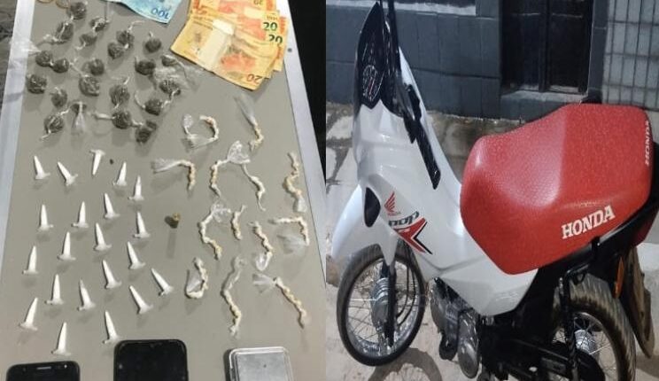 Diante do fato, o material foi apreendido e conduzido à DPC local, juntamente coma motocicleta abandonada.
