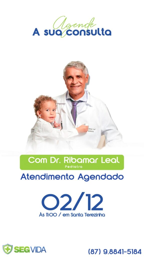 A SegVida em Santa Terezinha comunica aos seus usuários que nesta segunda-feira, 02 de dezembro o Pediatra Drº Ribamar Leal estará atendendo por agendamento antecipado a partir das 11:00 horas. Reserve hoje mesmo sua vaga entranto em contato pelo número (87) 98841-5184.