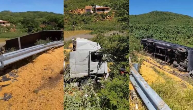 Na manhã deste sábado (26), um grave acidente foi registrado na rodovia estadual PB-262, na altura da Serra do Teixeira, no Sertão da Paraíba. O sinistro ocorreu por volta das 10h30min, envolvendo uma carreta bitrem carregada de grãos de milho.